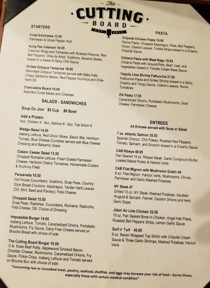 The vibrant atmosphere is complemented by attentive service, making it a perfect spot for gatherings or casual dinners. Enjoy the outdoor seating and heated areas while savoring creative cocktails from an imaginative drink menu. Whether you're dining with family or friends, The Cutting Board promises a satisfying culinary experience, from lunch to dessert. With everything from delicious appetizers to expertly cooked steaks, you’ll want to keep coming back for more!